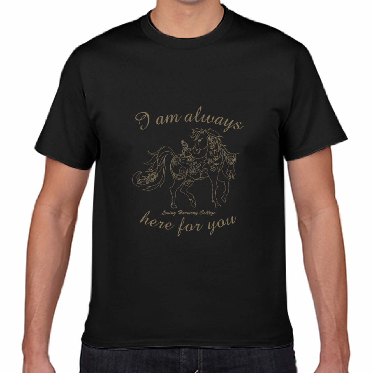 綿Tシャツ(大人) 馬と子ども【ブラック】